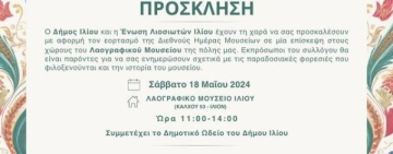 Ένωση Λιοσιωτών Ιλίου: Πρόσκληση με αφορμή τη Διεθνή Ημέρα Μουσείων στο Λαογραφικό Μουσείο Ιλίου