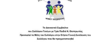 ΣΥΛΛΟΓΟΣ ΓΟΝΕΩΝ ΜΕ ΤΡΙΑ ΠΑΙΔΙΑ ΝΟΜΟΥ ΘΕΣΠΡΩΤΙΑΣ: Πρόσκληση σε Γενική Συνέλευση και διανομή τροφίμων